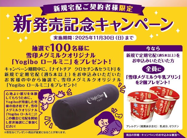 雪印メグミルク「ナイトチア クロセチン&セラミド」発売記念キャンペーン 夜の新習慣を支えるオリジナルYogibo