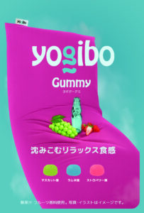 今回、もっちりと沈み込むような新触感のグミと、包み込まれるようなリラックス感を掛け合わせたコラボレーション商品として、「Yogiboグミ」が誕生しました。