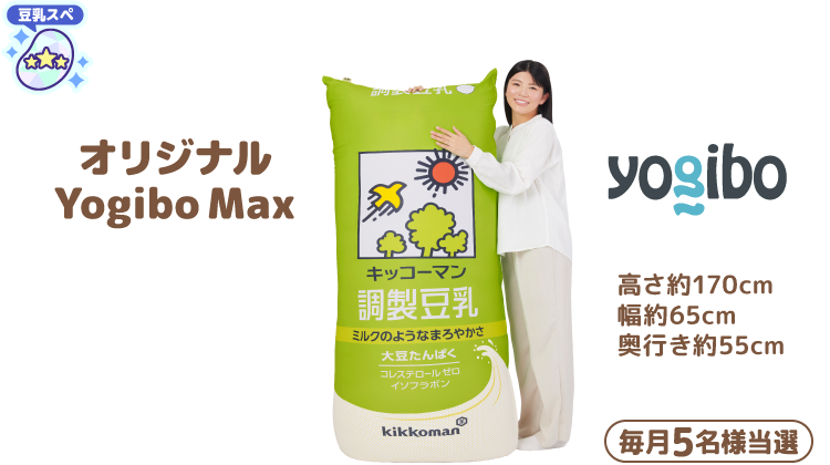 「豆乳スペシャリスト」のみが応募できる景品として採用されたのは、Yogibo Maxのオリジナルデザインモデル。
