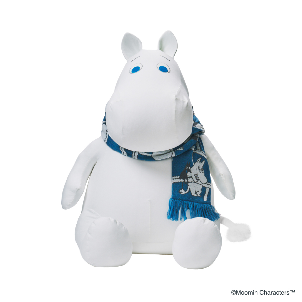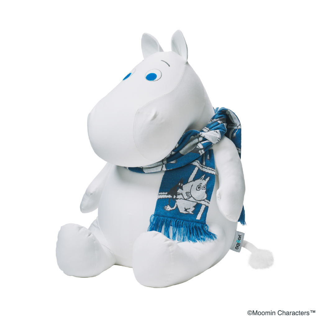 今回は、数量限定で「MOOMIN 冬季限定マフラー付 Yogibo Hugger ムーミン」も新たに登場。マフラーの描かれているのは橋の上で悩ましい表情を浮かべるムーミンの横にはネズミのソフス。まん丸の模様は二人の後ろ姿になっています。冬はあったかいお部屋でふわふわのムーミンと一緒にぬくぬくと過ごしませんか?