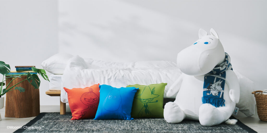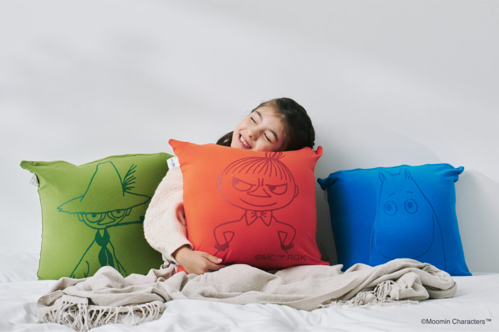ムーミンと仲間たちのアートをあしらった新作クッション。ムーミン、スナフキン、リトルミイの3種類がラインナップ。それぞれのキャラクターの世界観を表現したカラーで展開します。Yogiboと同じ素材を使用した、もっちりとした弾力とやわらかな肌触り。デザインは大胆に大きく入っているのにシンプルな仕上がりに。好きな色やキャラクターをひとつ置くだけで、空間の空気が変わり、あなたの毎日に小さな驚きと彩りを運んでくれます。