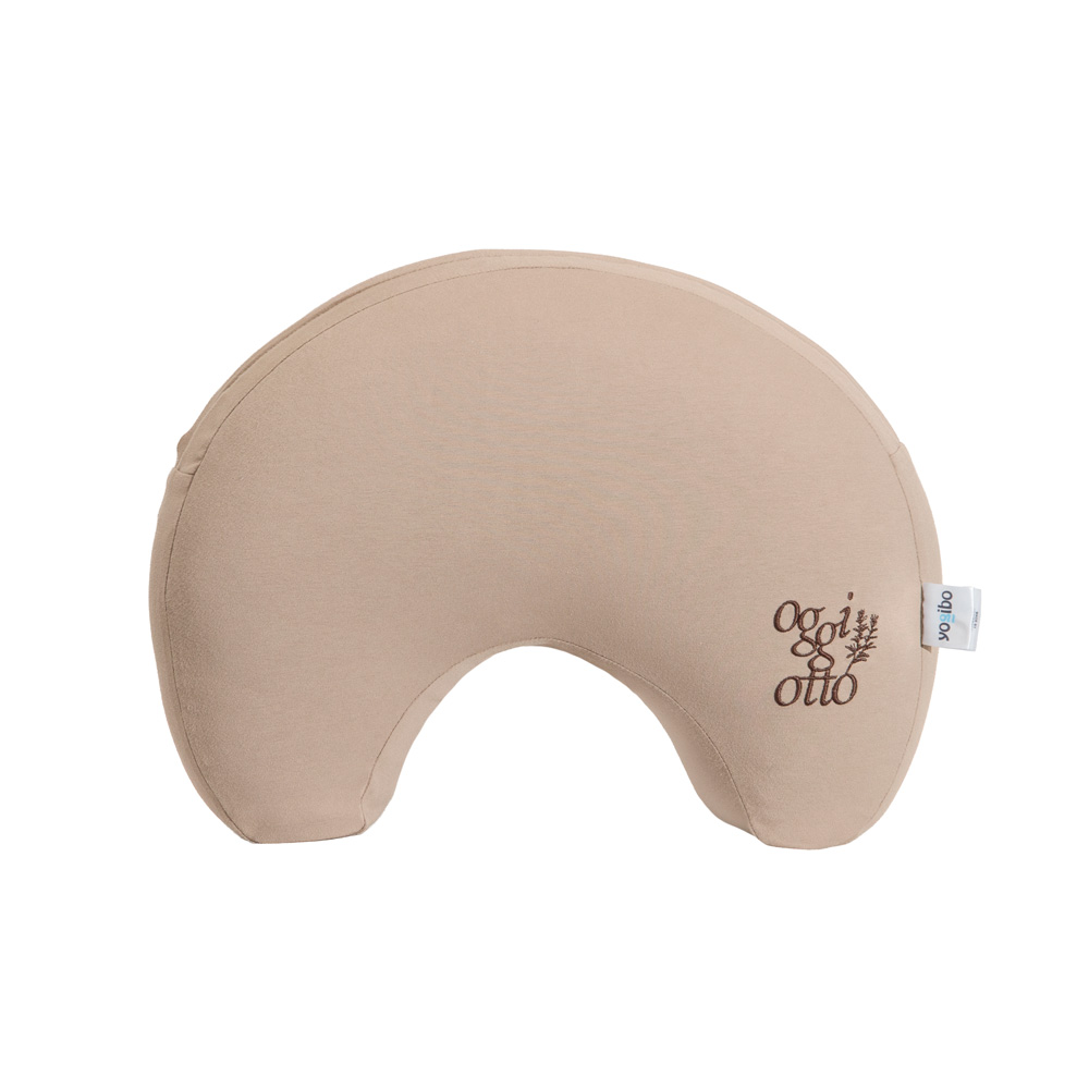 三日月の形が頭にフィットするYogibo Moon Pillowには、oggi ottoロゴ刺繍を。
